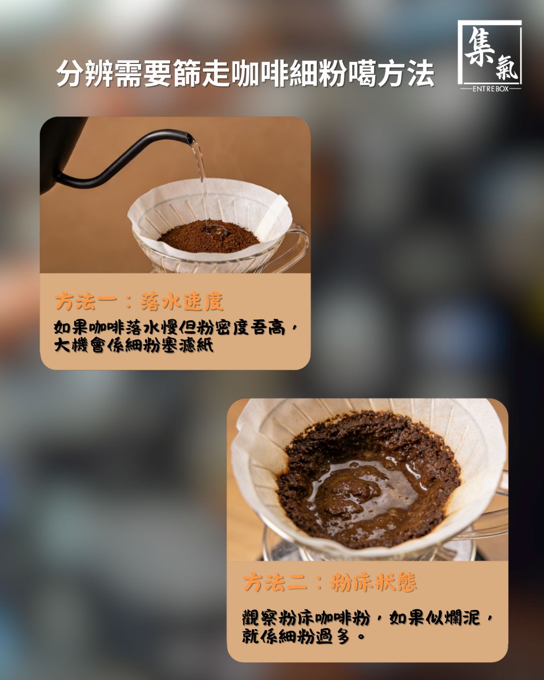 如果沖煮過程中,或者沖煮後嘅粉床出現咗以上兩個「徵狀」,而且咖啡味道帶有苦、雜呢類過萃嘅味道,咁好大機會就係細粉過多導致。遇到呢種情況,就可以試吓篩走細粉,再重新沖泡一次,睇吓咖啡味道有冇返返正常。