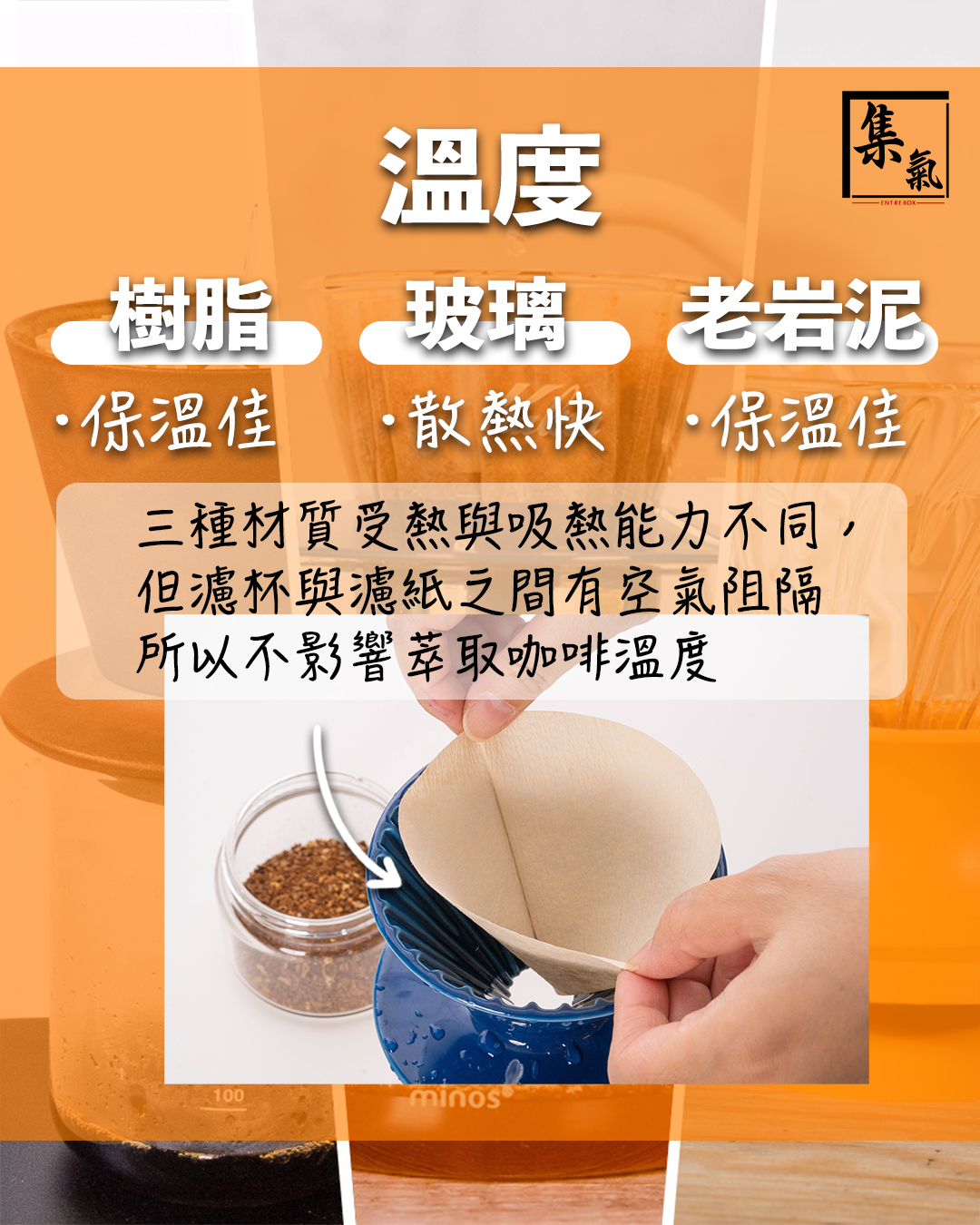 三種材質受熱同吸熱能力雖然唔同,但由於濾杯與濾紙之間有空氣嘅阻隔,