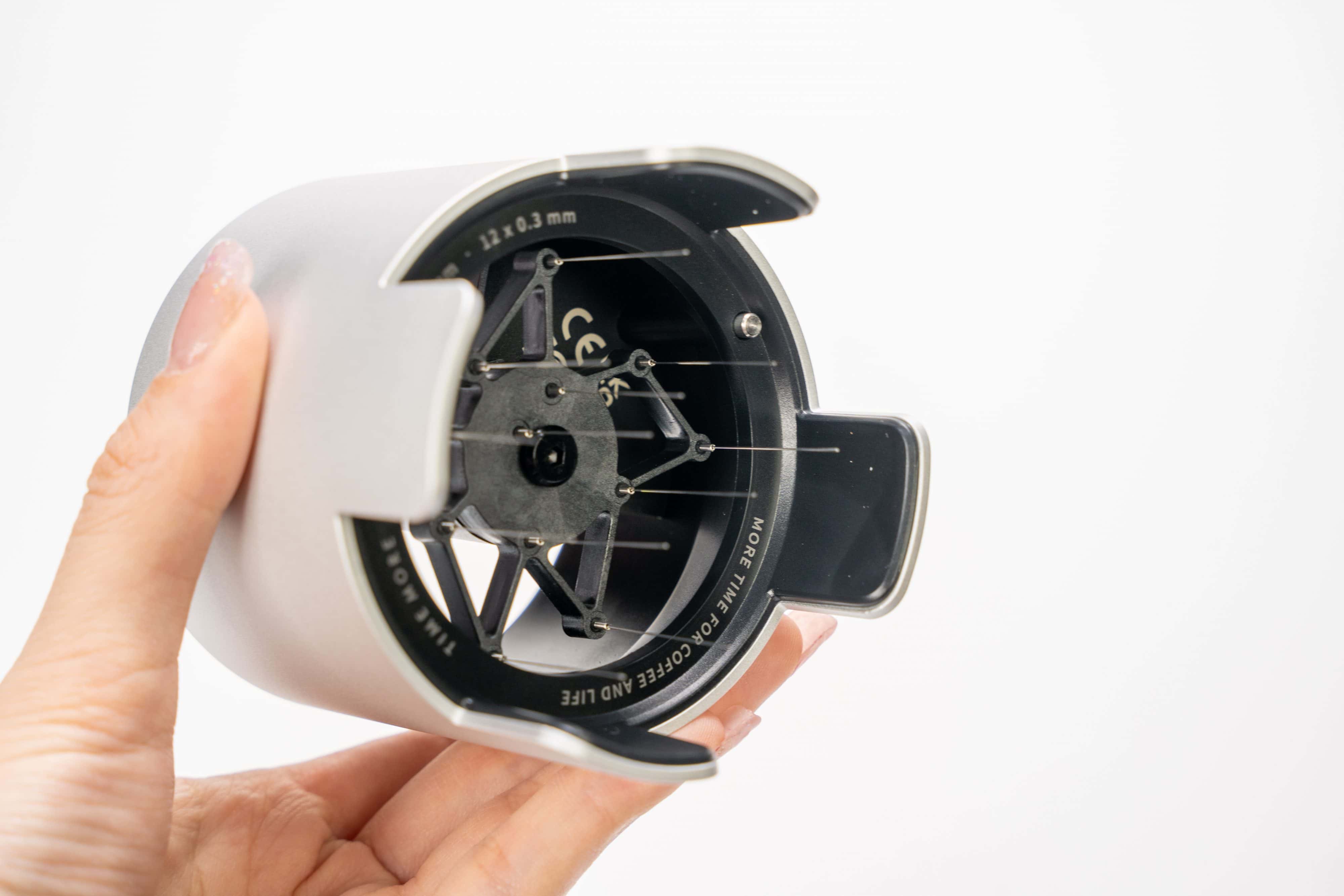 12根細針同心排列、正反交替旋轉,徹底打破結塊並均勻散粉。粉餅結構穩定,減少通道效應,讓每杯濃縮風味更均衡迷人。