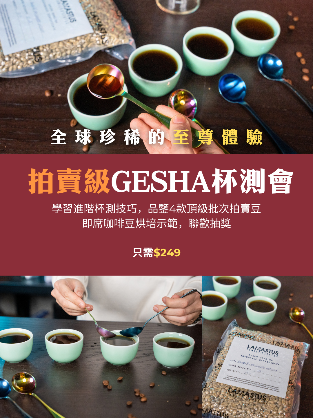 只需$249就可以試到全球極稀少的四款頂級拍賣Gesha,來自兩個產地、兩個拍賣會中杯測頭三名的批次!每位參加者都會得到Hario Mini 老岩泥品飲杯,以及參加聯歡抽獎贏拍賣咖啡豆!