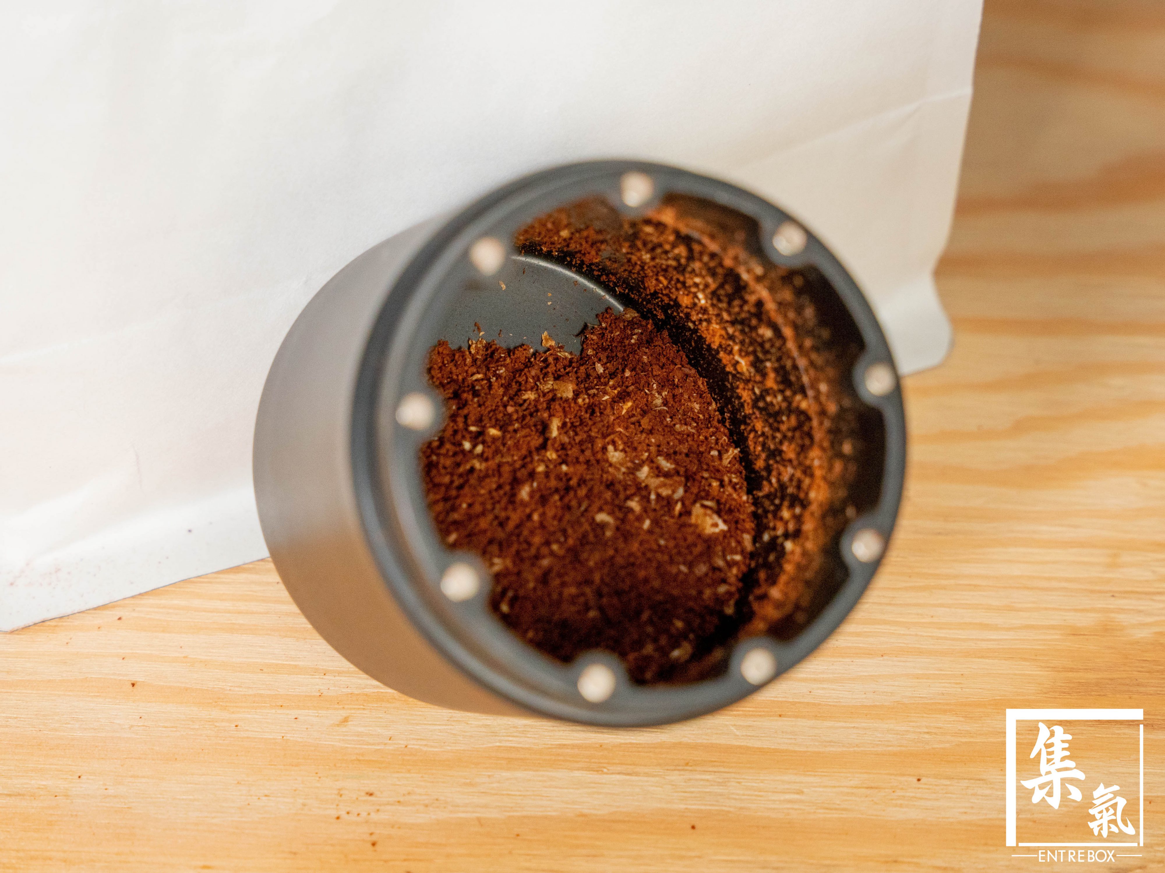 磨粉嗰陣,手沖格數大約扭到94格,而沖Espresso就扭到30格。可以睇到佢研磨得十分均勻,唔會出現明顯嘅大顆粒~不過磨緊嗰陣就有少少嘈 🙉。