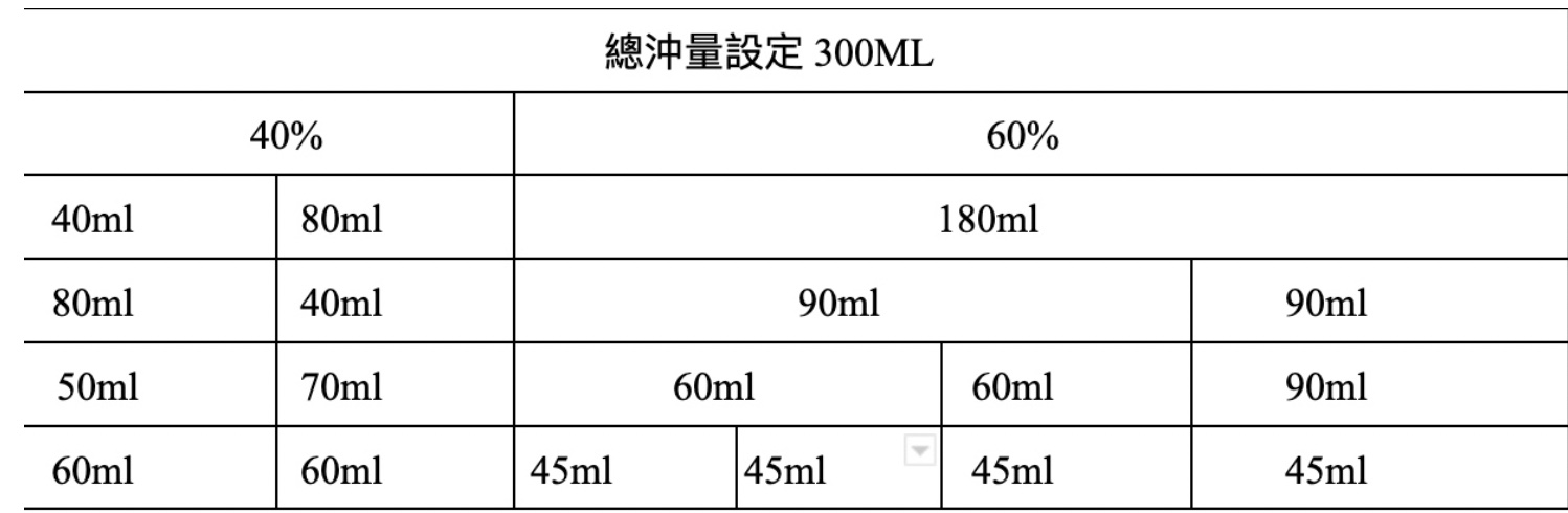 相反,第一次注水量比第二次高,酸味完全地被萃取,在前後輕的水量比例下,即使咖啡粉未再次被熱水沖刷,由於沖刷時間過短,萃取比較少的甜味。