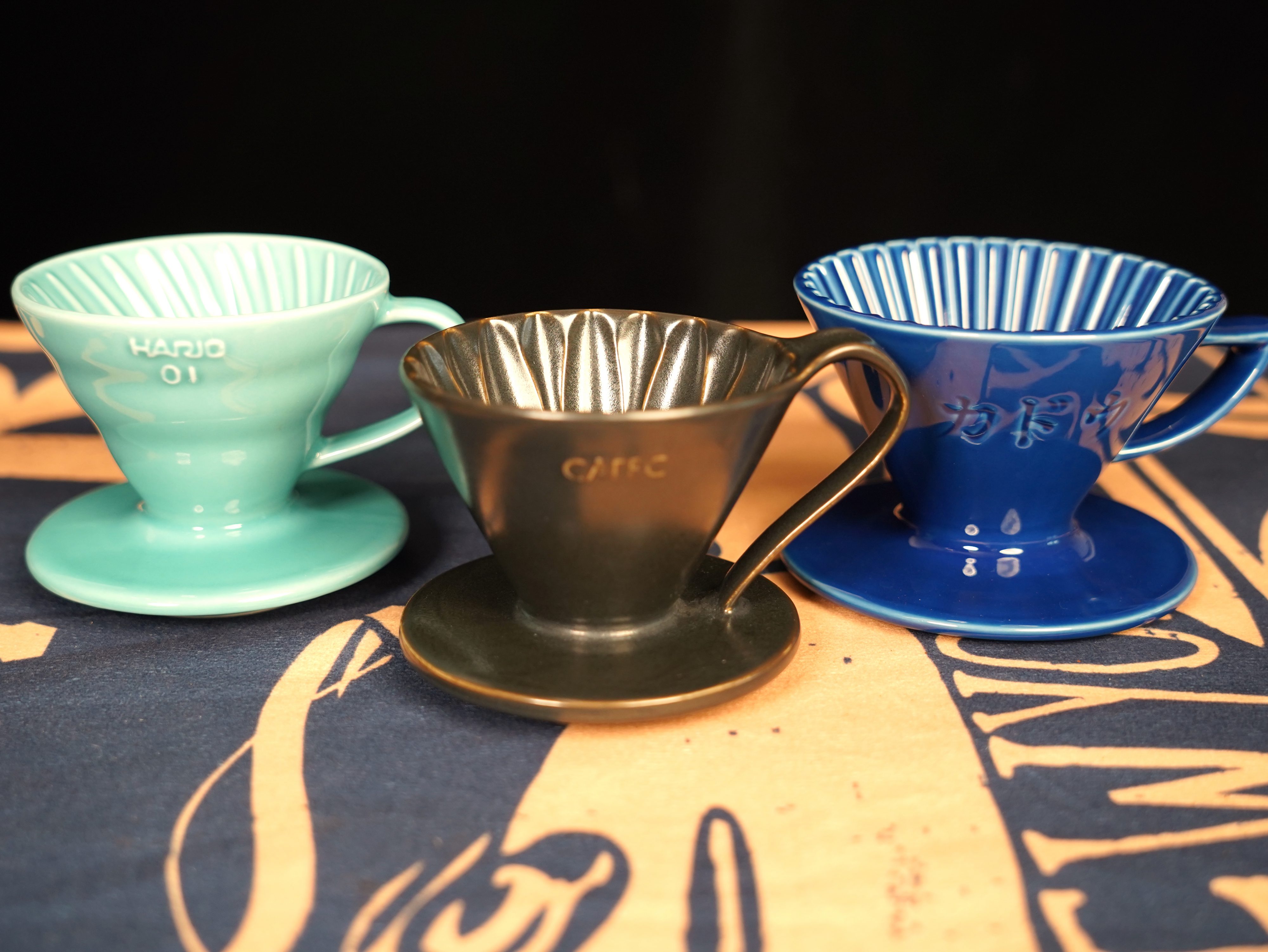 新手最常使用的 V60 濾杯,它的特徵是濾杯內壁呈現密集式螺旋紋,由一條條長短肋骨組成。放入濾紙時,濾紙會被托起,所以它的流速比三洋花瓣濾杯快。